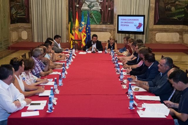 El presidente de la Diputación, Javier Moliner, ha ratificado esta mañana el compromiso adquirido por el Gobierno Provincial con todos los ayuntamientos que han solicitado una Unidad de Respiro Familiar a través de la firma de los respectivos convenios con los 24 nuevos municipios que se adherirán a este servicio y que permitirán al Gobierno Provincial "completar la mayor red de servicios sociales para nuestros mayores puesta en marcha hasta la fecha".