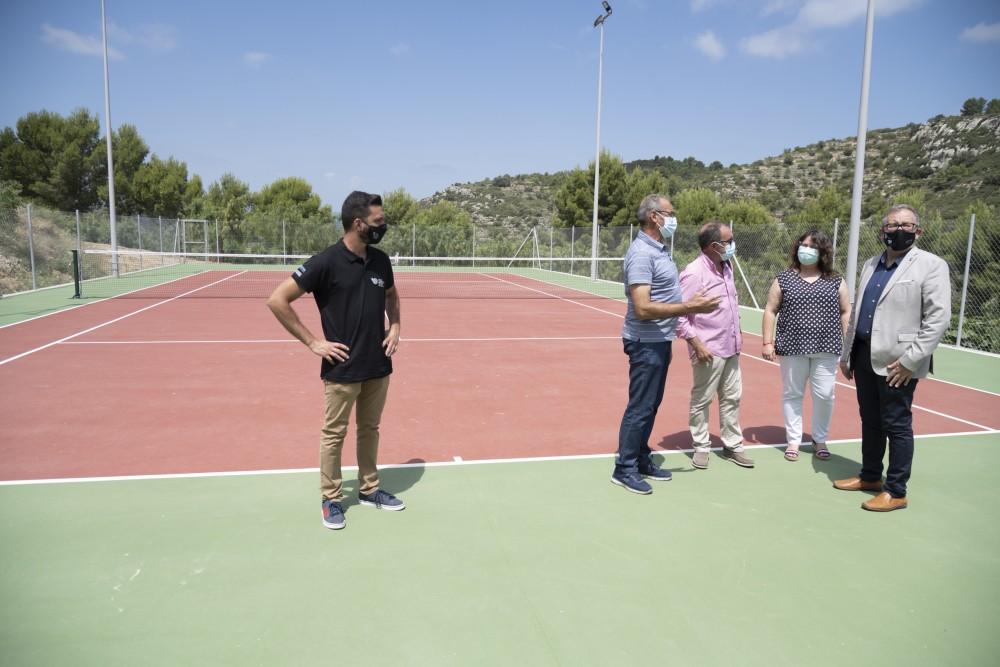 Una vez en Cervera del Maestre, el presidente y la diputada Sanz han visitado junto al alcalde, Adolf Sanmartín, las obras de acondicionamiento de la zona recreativa del Calvario, ubicada en la parte alta de la población. Se trata de una actuación que se acomete en dos fase fundamentalmente sobre la pista de tenis porque se encontraba muy deteriorada. La primera fase ha realizado con cargo al Plan 135 de 2020 y la segunda se iniciará a partir de septiembre con los fondos del Plan 135 de 2021. Se trata de un proyecto diseñado para acometer una remodelación integral, que incluye entre otras acciones la modernización de la instalación eléctrica y la colocación de una nueva valla.