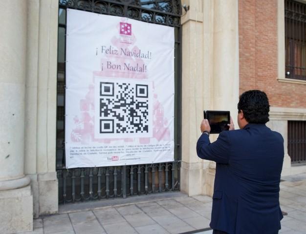 El presidente de la Diputación, Javier Moliner, ha descubierto esta mañana la pancarta con código QR a través de la que los ciudadanos ya pueden descargarse el vídeo de felicitación de la institución provincial. Bajo el lema “En estas Navidades que no falte ni el calor de los tuyos, ni el sabor de Castellón”, la pieza audiovisual hace un recorrido de un minuto de duración que destaca los productos autóctonos de la provincia animando a consumirlos por su calidad y su vinculación al territorio y nuestra cultura.