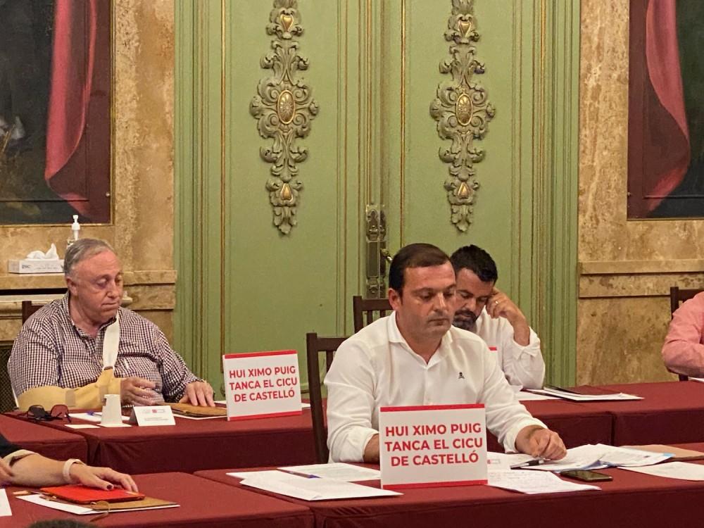 Los populares lo han escenificado con carteles dispuestos en las mesas, delante de cada uno de los diputados, donde podía leerse: “Hui Ximo Puig tanca el CICU de Castelló”.