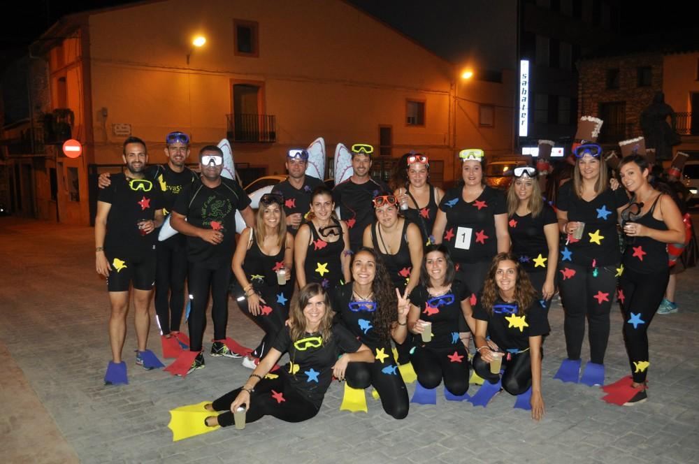 La noche de disfraces que tuvo lugar el pasado jueves, y en el que varios centenares de valldalbenses tomaron parte a través de los más de 30 grupos inscritos, aunque fueron muchos más lo que, de manera independiente, abandonaron sus indumentarias habituales para convertirse en todo tipo de divertidos personajes e inundar las calles de color y diversión.