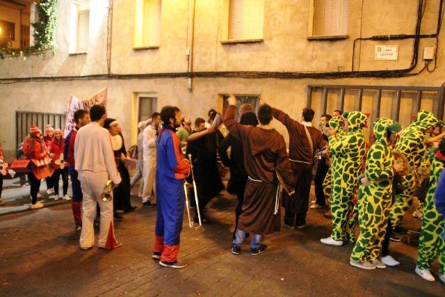 Al frente iba la Comisión de Fiestas y justo detrás la Xaranga Llenya al Bombo, para dar paso a las peñas y desfilar hasta el Edificio Multifuncional, donde se ha celebrado un baile de disfraces amenizado por la orquesta Oceanic.
