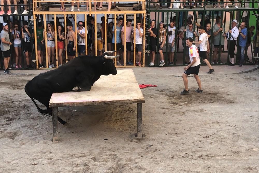 Després de la desfilada, que va estar amenitzada per la xaranga, Els Desmadrats, s'iniciava la festa taurina, amb caps de bestiar de la ramaderia d'Iván Miró de la Ribera.
