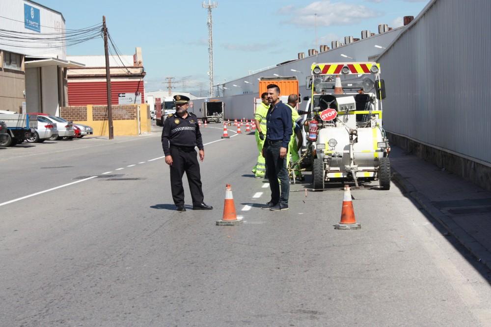 Els treballs de pintat al polígon Ramonet creen un carril reservat per al gir en el desviament cap a l'ermita