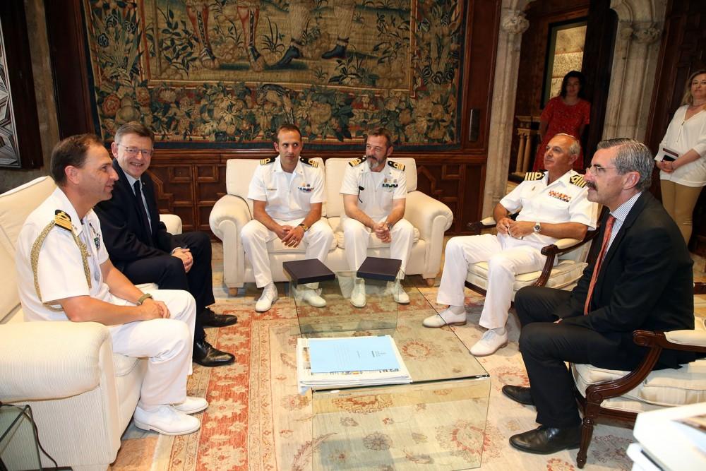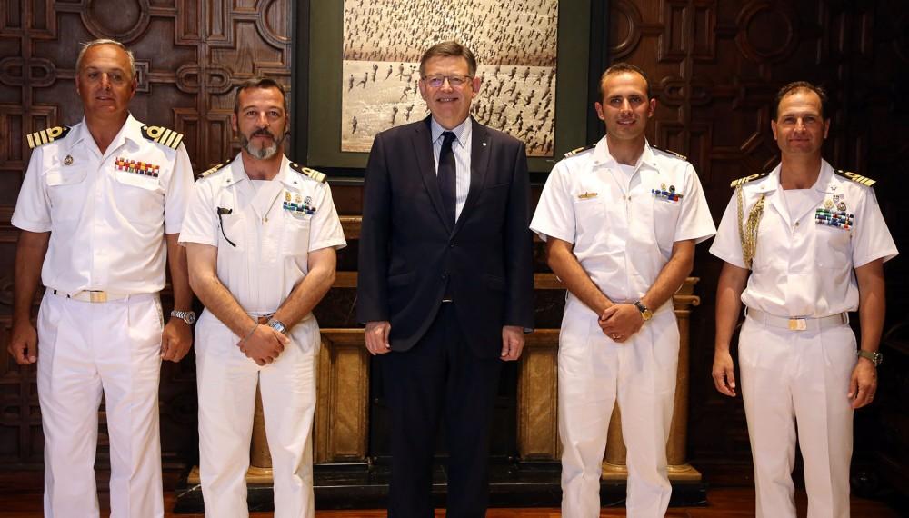 El president de la Generalitat, Ximo Puig, ha recibido en audiencia al comandante naval de Valencia y Castellón, Ignacio José Villarrubia de Francisco, y a los comandantes italianos de la patrullera Orione, Gioacchino Luca Barbagallo, y del buque guardacostas Luigi Dattilo, Federico Panconi. Además, también ha asistido a la reunión el agregado de Defensa Naval de la Embajada de Italia en España, Doménico Gugliemi, así como el director general de la Agencia de Seguridad y Respuesta a las Emergencias, José María Ángel.