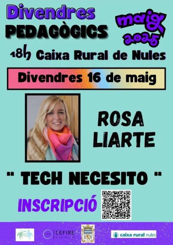 La transformació digital i les noves tecnologies és la temàtica que tractarà l’última sessió amb la ponència anomenada ‘TECH necesito’ que la farà Rosa Liarte, docent i experta en noves metodologies educatives, i tindrà lloc a les sis de la vesprada al saló teatre de la Caixa Rural de Nules.