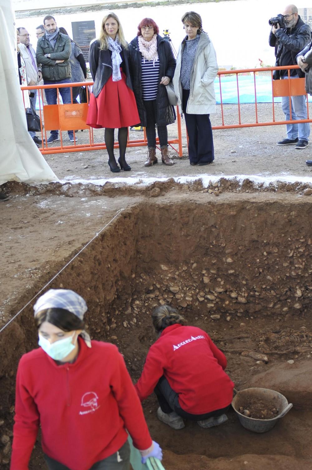 La ministra se ha interesado por las labores de exhumación ejecutadas por la asociación científica ArqueoAntro para localizar los restos de tres personas fusiladas por el franquismo entre 1939 y 1941, que están siendo sufragadas por el Ayuntamiento. La ministra ha afirmado que es necesario "concienciar" a la sociedad sobre la recuperación de la dignidad a las personas represaliadas por el franquismo, porque "no es la guerra de los abuelos", sino que es una tarea de "decencia, de solvencia democrática, de libertad, de pasado y de futuro" y de "poder mirar al espejo todos nosotros como demócratas y como ciudadanos". Y ha recalcado: "No puede haber un solo muerto en una cuneta" y por ello "es necesario dar esa respuesta por dignidad como país".
