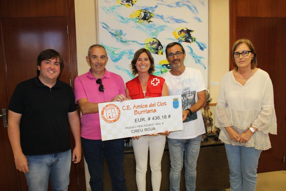 A su lado, la alcaldesa Maria Josep Safont y el concejal de Deportes, Vicent Granel, han coincidido en “destacar la doble labor que desinteresadamente prestan los miembros de Amics del Clot, que además de dinamizar la vida deportiva de la ciudad, muestran su carácter solidario ofreciendo los posibles beneficios a una entidad como Cruz Roja Borriana, que a su vez, continúa con su impagable labor social que ya supera los cien años en nuestra ciudad”.