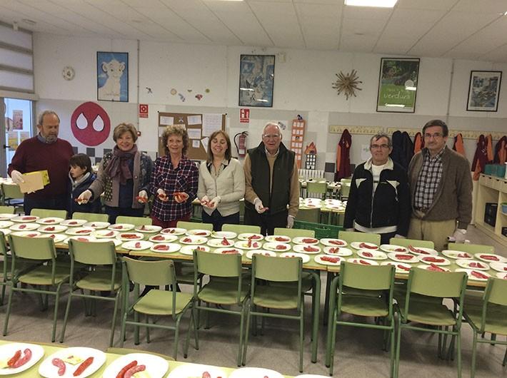 En total, 41 voluntarios participaron durante toda la jornada en hacer posible esta acción solidaria. De hecho su trabajo comenzó el día anterior con los preparativos de decenas de kilos de embutido que ese día se repartieron a los pies de la hoguera encendida frente a la antigua estación.