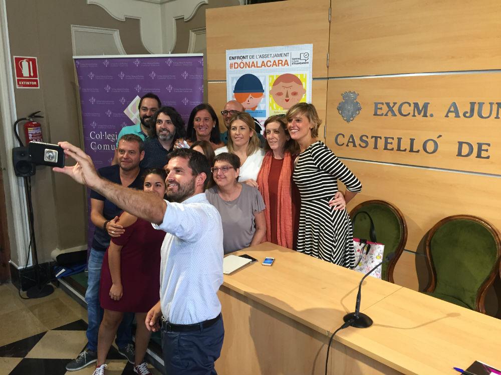 El Ayuntamiento de Castellón ha presentado esta mañana una campaña contra el acoso escolar, que pretende atender el problema desde la participación, la educación y la información, pero también a través de las herramientas más directas en las que se mueven adolescentes y niños: las redes sociales. La imagen de la campaña es un cartel de grandes dimensiones que se centra en la idea de que “ante el acoso escolar es necesario dar la cara y que toda la comunidad educativa se implique", ha indicado Enric Porcar. Y para activar esta participación, un paso sencillo pero eficaz, un 'selfi' delante del cartel y reenviarlo a través de las redes con el hashtag #Dónalacara. O dicho de otra manera: "yo también me implico y estoy en contra del acoso escolar".