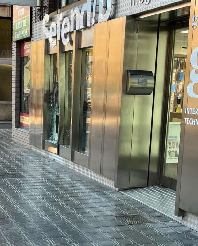 Els lladres han entrat en el comerç, especialitzat en mòbils, trencant la vidriera