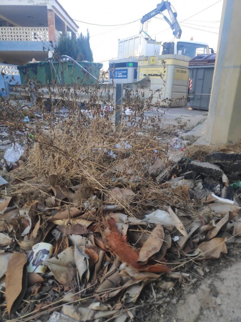 Día 19 de mayo en el camino del Serradal con el camino Bovar por verter restos de poda en el interior de un contenedor verdes destinado a residuos urbanos genéricos.