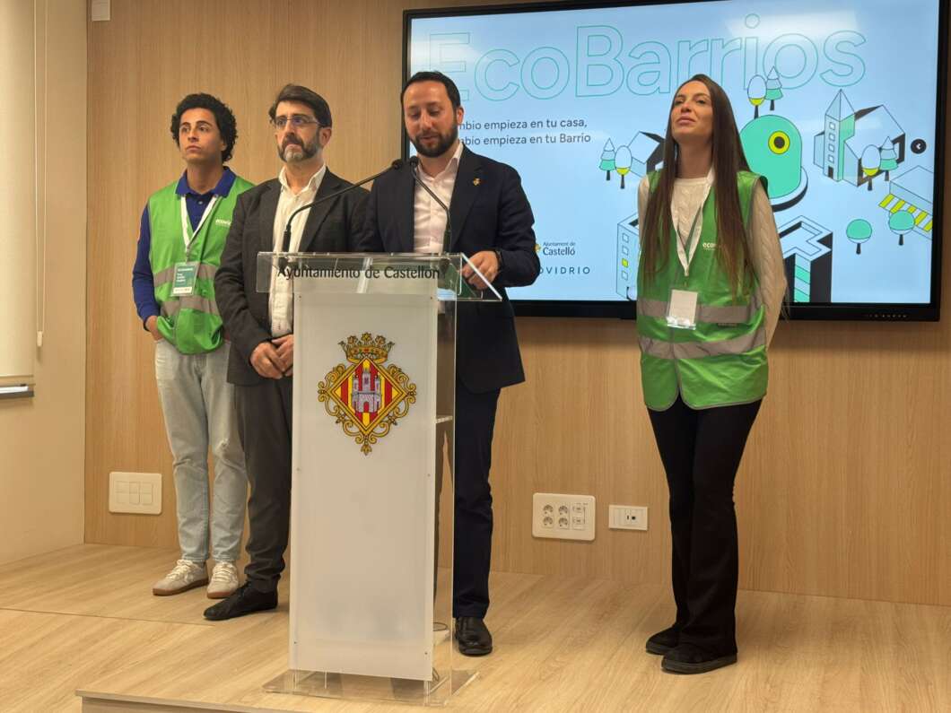 El Ayuntamiento de Castelló, en colaboración con Ecovidrio, ha presentado este lunes la nueva campaña Eco Barrios, una iniciativa que ya se desarrolla en otras ciudades españolas y que aterriza por primera vez en la capital de la Plana con el objetivo de mejorar la recogida selectiva de envases de vidrio en determinados barrios.