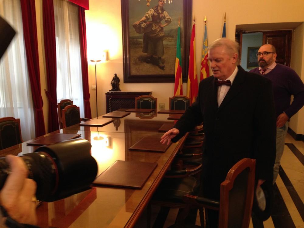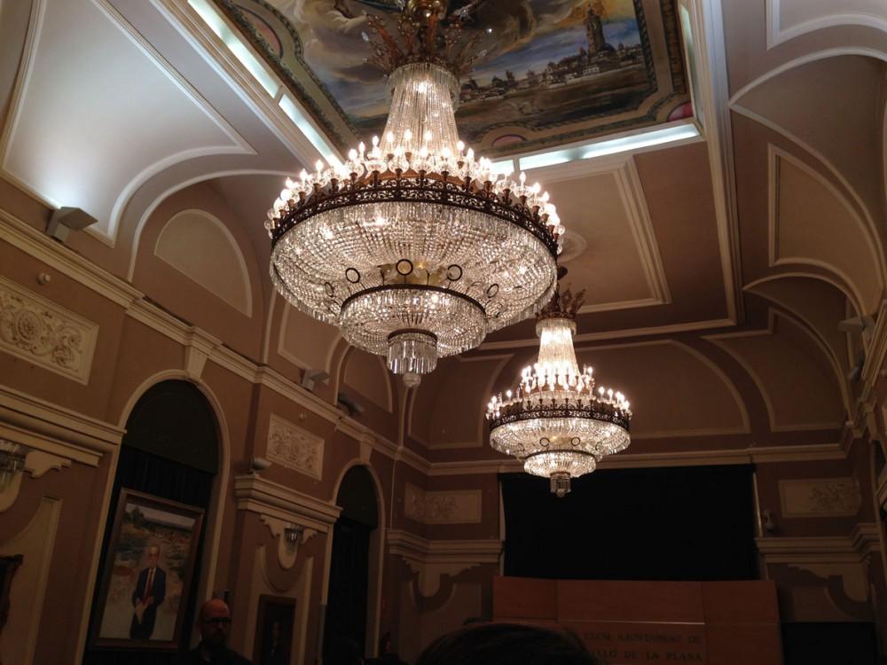 techo permitieron descubrir, por casualidad, un cuadro de gran relevancia por sus referencias, atribuido a Oliet, y datado en 1838, que había sido tapado en la reforma anterior, del 53: “venció de los enemigos de la libertad”. Se sustituyeron los asientos de los concejales por butacas que, posteriormente volverían a dejar sitio al mobiliario original. Y en la Sala de la Comisión de Gobierno, los muebles ‘prestados’ fueron sustituidos por mobiliario noble de ‘Babiloni’, con las mismas líneas que los que se crearon en su día para la Alcaldía y el Salón de plenos.