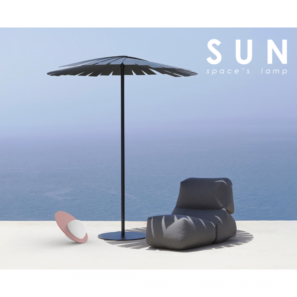 El projecte SUN és un llum d'exterior inspirat en la llum natural, representa al Sol i tot el sistema al seu voltant. La seua construcció amb formes geomètriques bàsiques permet posicionar-la de diferents maneres per a modular la intensitat de la llum i la converteix en una escultura durant el dia i una experiència durant la nit. S'integra en xicotets espais exteriors o grans instal·lacions. Un sol llum té gran impacte, però en grups de dos o tres configura un conjunt decoratiu. El llum d'exterior portàtil està fabricat amb alumini termolacat i polietilé reciclable rotomodelat, il·luminada amb llums de fluorescència.