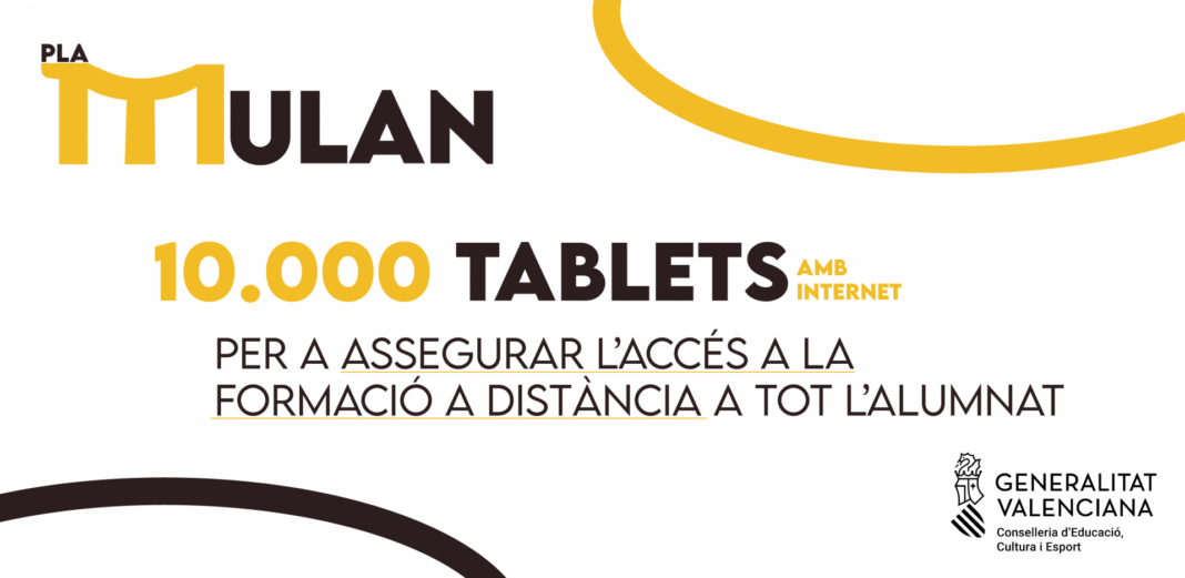 Educació de la Generalitat disposarà de 10.000 tauletes tàctils amb connexió a Internet integrada per a ajudar l’alumnat que estiga tenint dificultats per a seguir l’aprenentatge a distància des de casa per no disposar al seu habitatge de cap dispositiu electrònic. Aquesta mesura s'emmarca en una adquisició global de dispositius per part de la Conselleria d'Hisenda i Model Econòmic, per a diferents àrees de la Generalitat.