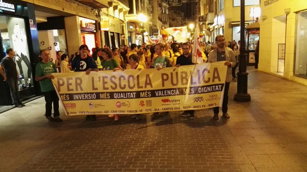 A banda de la vaga acedèmica d'aquest matí, tant sindicats com alumnes i gent contraria aquestes mesures s'ha reunit en una manifestació multitudinaria que ha recorregut els carrers principals de Castelló durant aquesta vesprada.