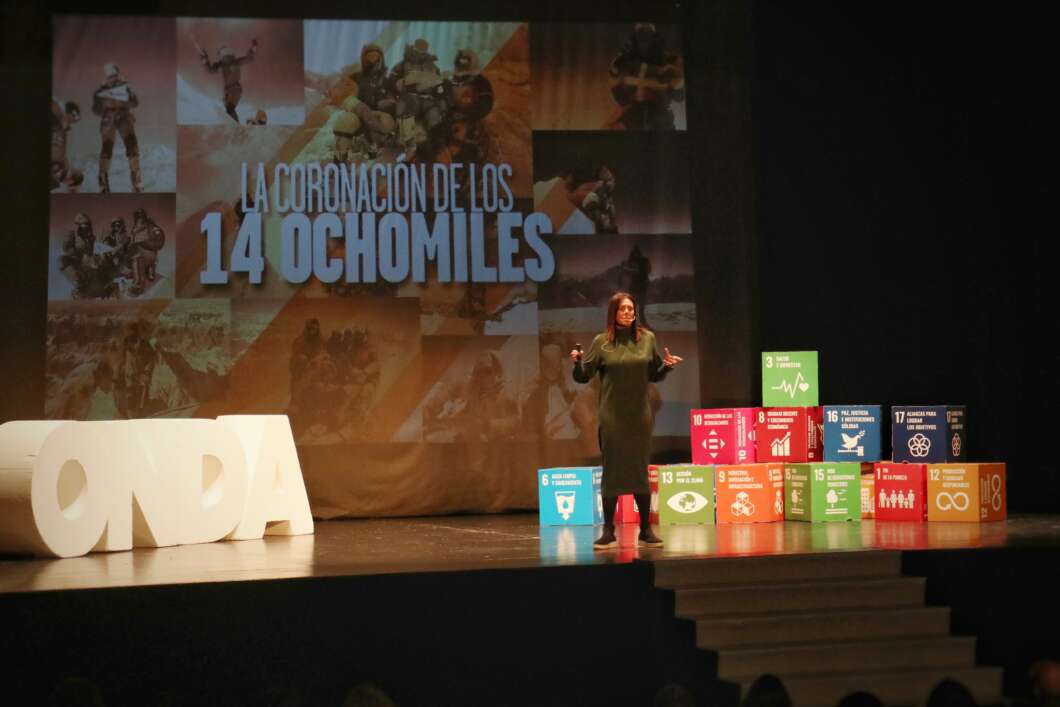 Edurne Pasabán ha sido la protagonista de la segunda conferencia de 'Onda Inspira', el ciclo sobre salud mental del Ayuntamiento ondense. La alpinista, primera mujer en coronar los 14 ochomiles, ha relatado su historia de resiliencia, dando claves para conseguir la superación personal con motivación e inconformismo. También ha incidido en la necesidad de "pedir ayuda" cuando es necesario, en apoyarse en los demás.