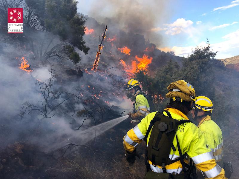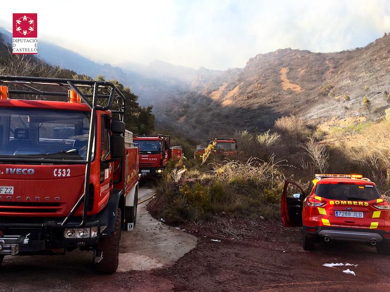 Los medios que estuvieron trabajando en el incendio durante la tarde fueron 6 unidades de bomberos forestales de la Generalitat, 6 autobombas, 2 dotacions de Bomberos de Castellón, 4 medios aéreos de la Generalitat y la Unidad de Vigilancia.