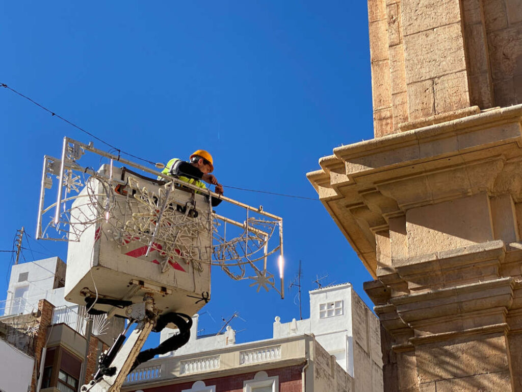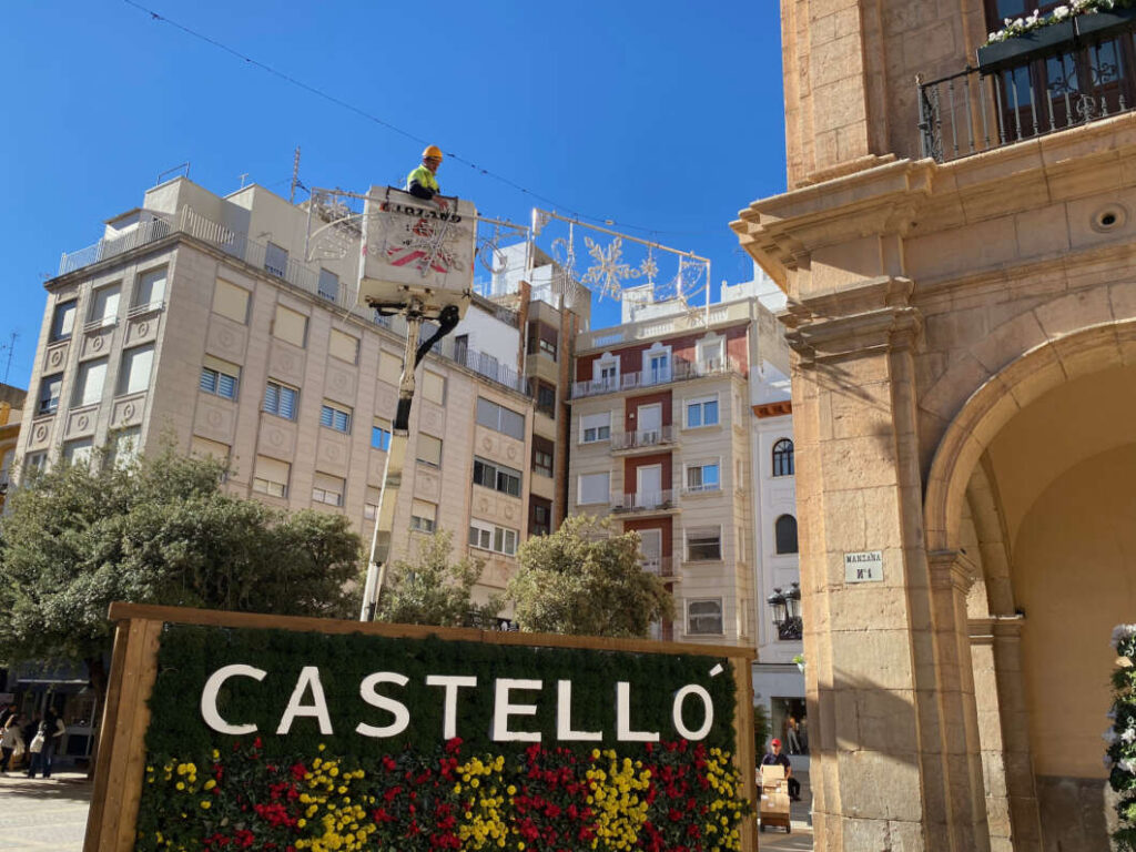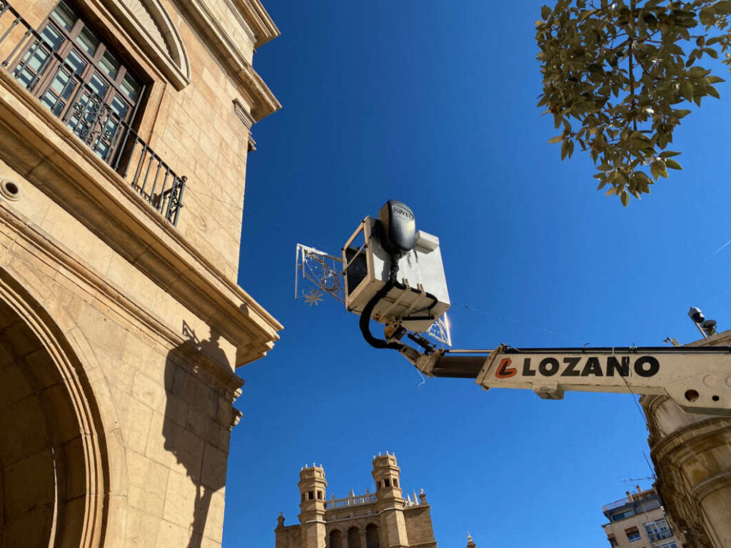 El alumbrado navideño se instala en la plaza Mayor de Castellón