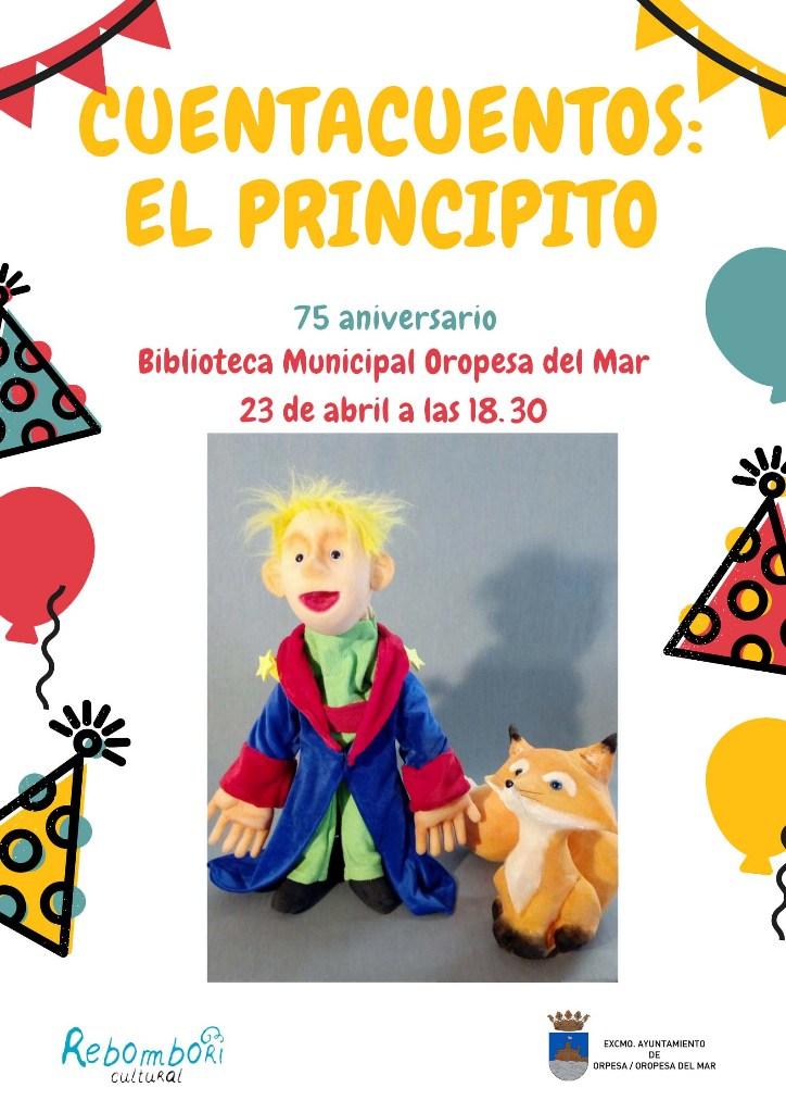 Cartel Principito OropesaLa concejala de Cultura, Mari Carmen Taulé, señaló que “no podíamos dejar pasar la oportunidad de conmemorar el 75 aniversario de la publicación de ‘El Principito’, en una cita como es la jornada del Día del Libro”. “La biblioteca será el punto de encuentro de todos los usuarios que quieran conmemorar este día, para el que se han preparado muchas sorpresas con el objetivo claro de fomentar el placer por la lectura y respetar la contribución de los escritores al progreso social y cultural”, añadió la concejala.