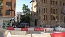 El Ayuntamiento ha tenido que modificar el diseño del cruce de la calle Zaragoza con la avenida del Rey, para poder permitir el giro del autobús urbano, que sustituirá de momento al Tram, para acercar a los vecinos al centro de la ciudad..