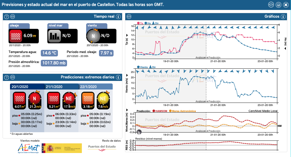El Ayuntamiento de Almassora ha decidido desalojar las viviendas de la costa, para prevenir incidencias ante la dureza del temporal marítimo. La borrasca Gloria se desplaza poco a poco hacia el norte de la Comunitat Valenciana. La predicción de Aemet, de Puertos del Estado refleja para esta noche olas de más de seis metros de componente norte, noreste.