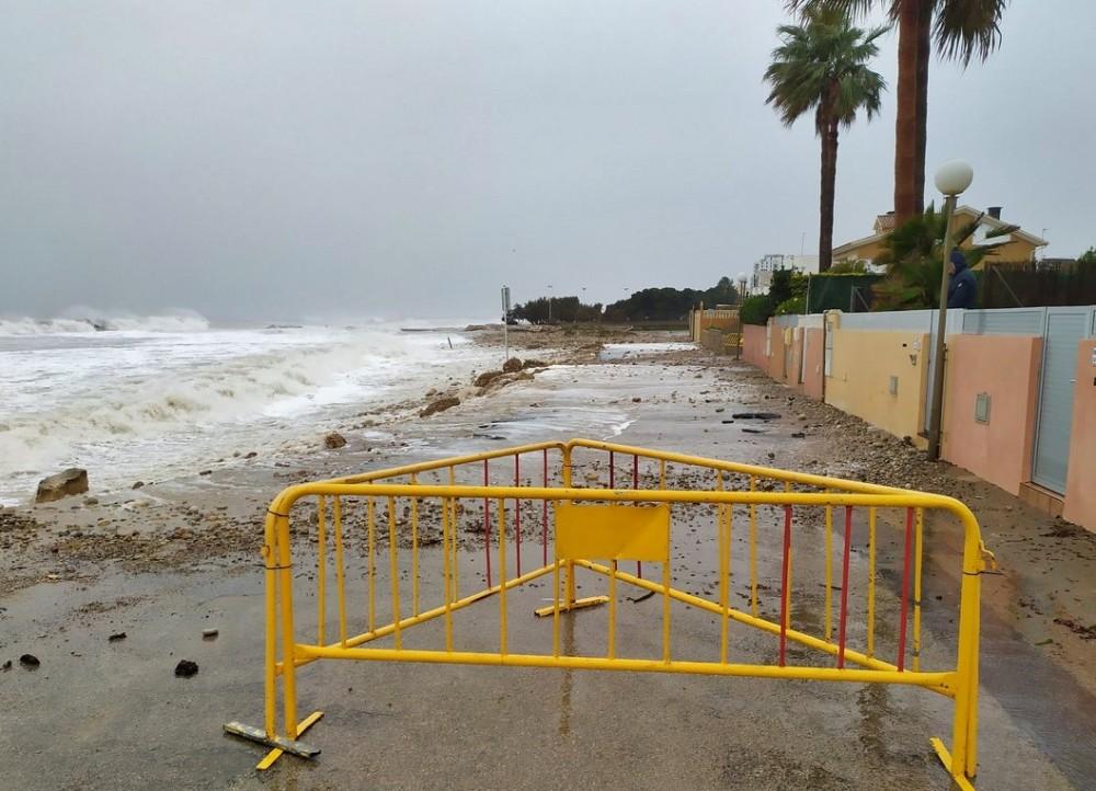 La borrasca Gloria ha obligado a la policía local de Vinaròs a cortar al tráfico el tramo de la carretera de la costa sur que va desde la calle Santaella hasta la calle Benicarló por el fuerte temporal marítimo.