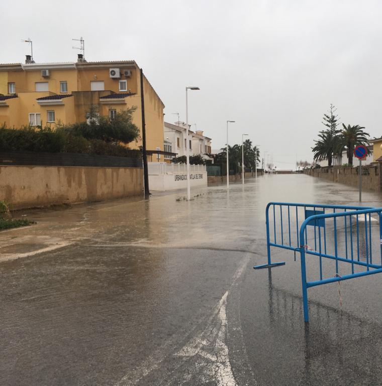 En Benicarló, el temporal también esta causando estragos. El mar ha inundado el vial que delimita el linde con Peñiscola. Además, la policía local ha informado que el entorno de la playa de la Caracola este inundado, así como que la rambla Cervera está aportando caudal de agua, con lo que ha de abstenerse a cruzarla. También ha informado que para ir dirección ha Vinaròs ha de hacerse a través de la variante de la Nacional 340.