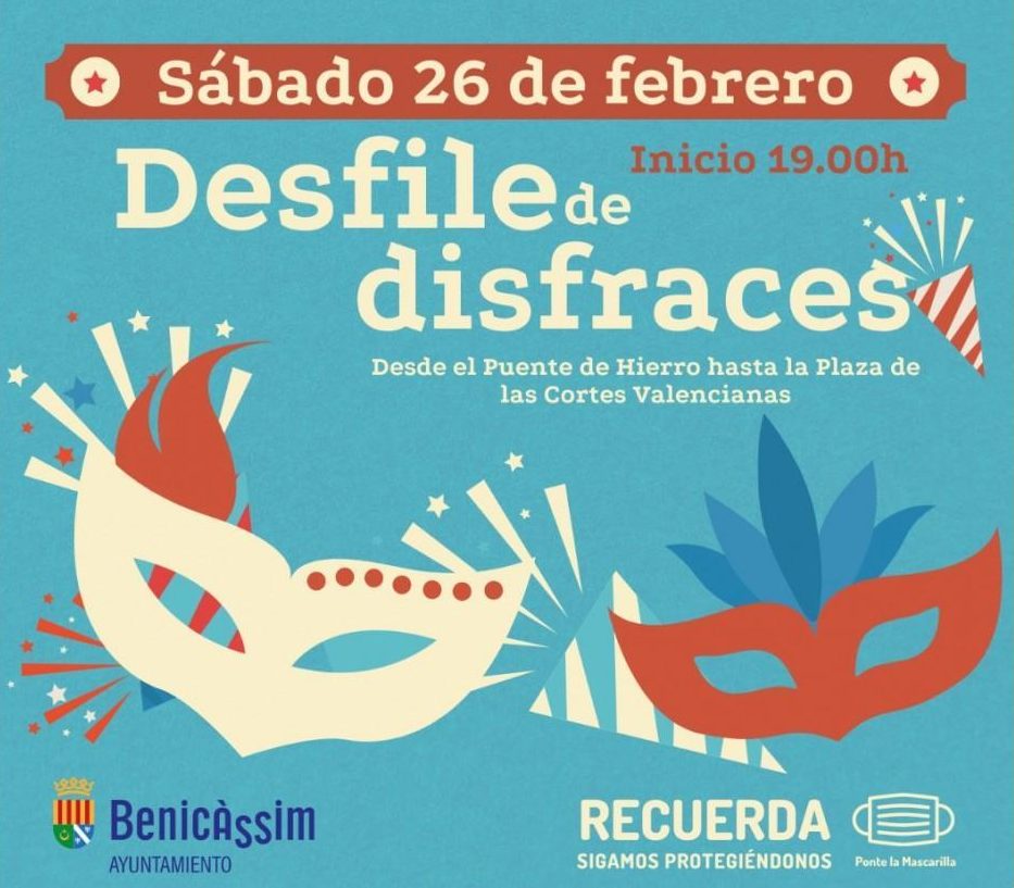 Benicàssim celebrará el Carnaval el sábado 26 de febrero con un gran desfile de disfraces. “Con las medidas de seguridad sanitaria vigentes, recuperamos el desfile del Carnaval que llenará de gran colorido y animación las principales calles del municipio y que cada año va sumando participantes, afianzándose así dentro de la agenda de eventos festivos con los que dinamizamos y desestacionalizamos la oferta en Benicàssim”, ha señalado la alcaldesa, Susana Marqués, quien insiste en “seguir protegiéndonos con el uso de la mascarilla”.