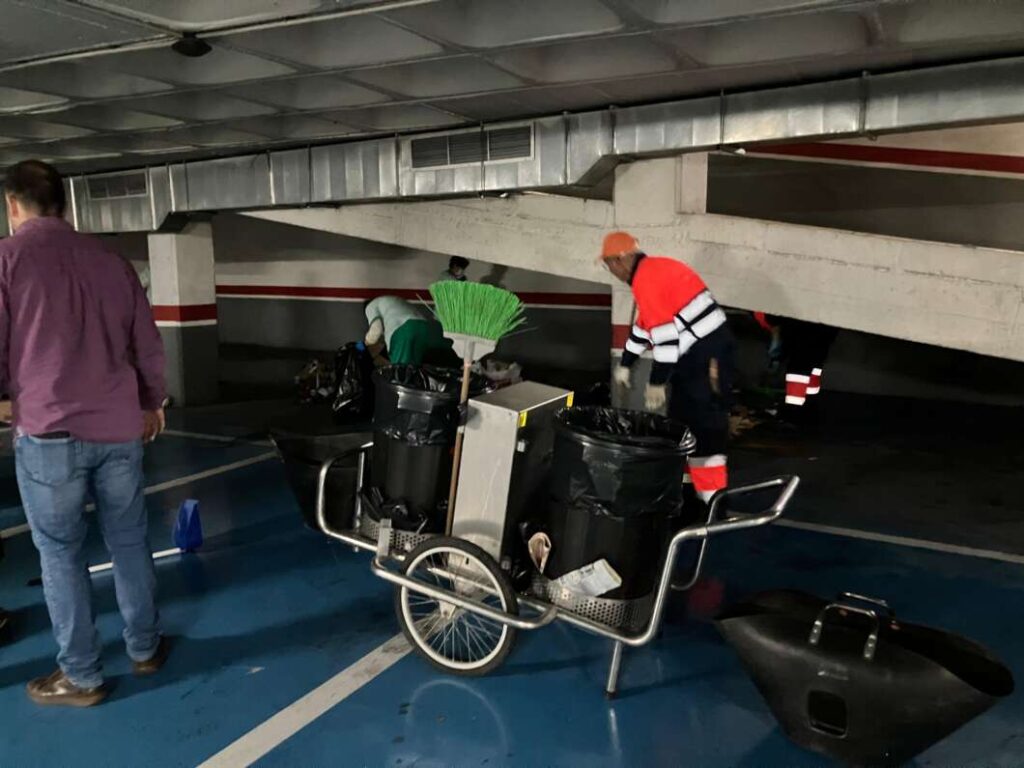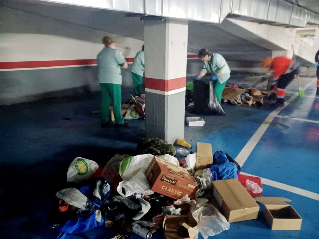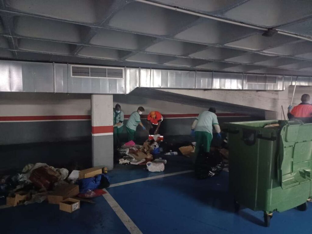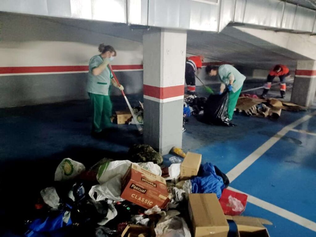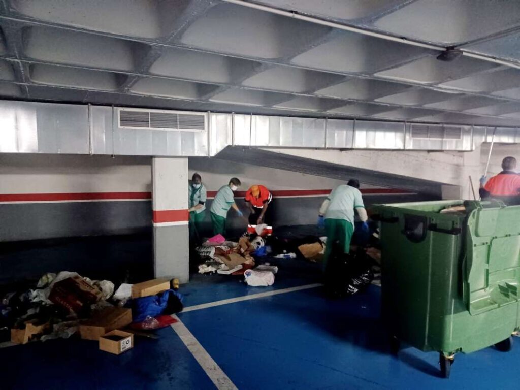 Personal de limpieza ha procedido durante la tarde de este miércoles a la retirada de los enseres y basura acumulada en el sótano 3 del parking de la plaza Santa Clara. Una zona que desde hace un año se había convertido en la 'vivienda' de dos personas sin hogar.