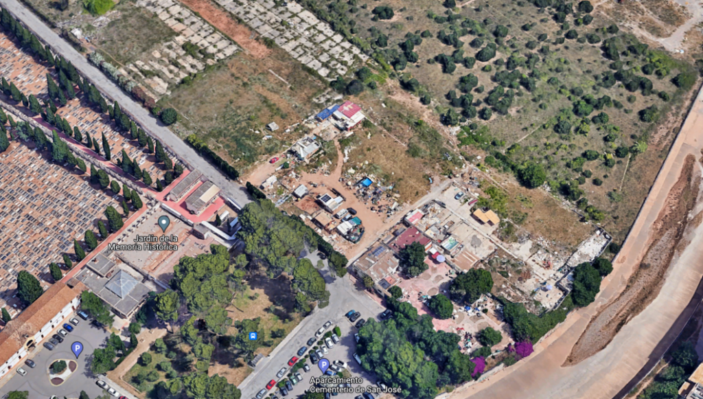 En 2016 saltaba la alarma por un incendio descontrolado en uno de esos solares, frente a la valla norte del Cementerio y junto a la Cuadra del Borriolench. El fuego llegó a quemar los cables y dejó aislados a los grupos periféricos de la zona.