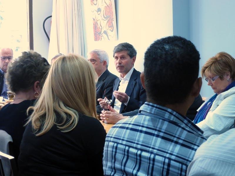 Alfonso Bataller se ha reunido esta tarde con los vecinos del Distrito Este para compartir 'Un café con el alcalde' y atender las sugerencias y peticiones de los habitantes de esta zona de la ciudad de Castellón. Un encuentro en el que han estado presentes también el Teniente de Alcalde, Miguel Ángel Mulet, y la concejala de apoyo, Begoña Carrasco.