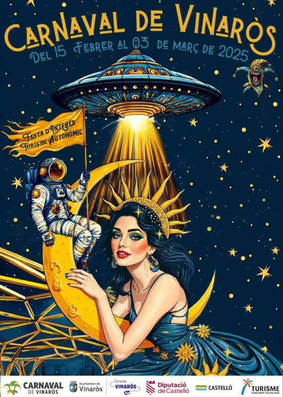 El Carnaval 2025 de Vinaròs ya tiene cartel anunciador, es obra de Vicent Comes y lleva por lema ‘De Vinaròs a la Lluna: Un Carnaval Intergalàctic’.
