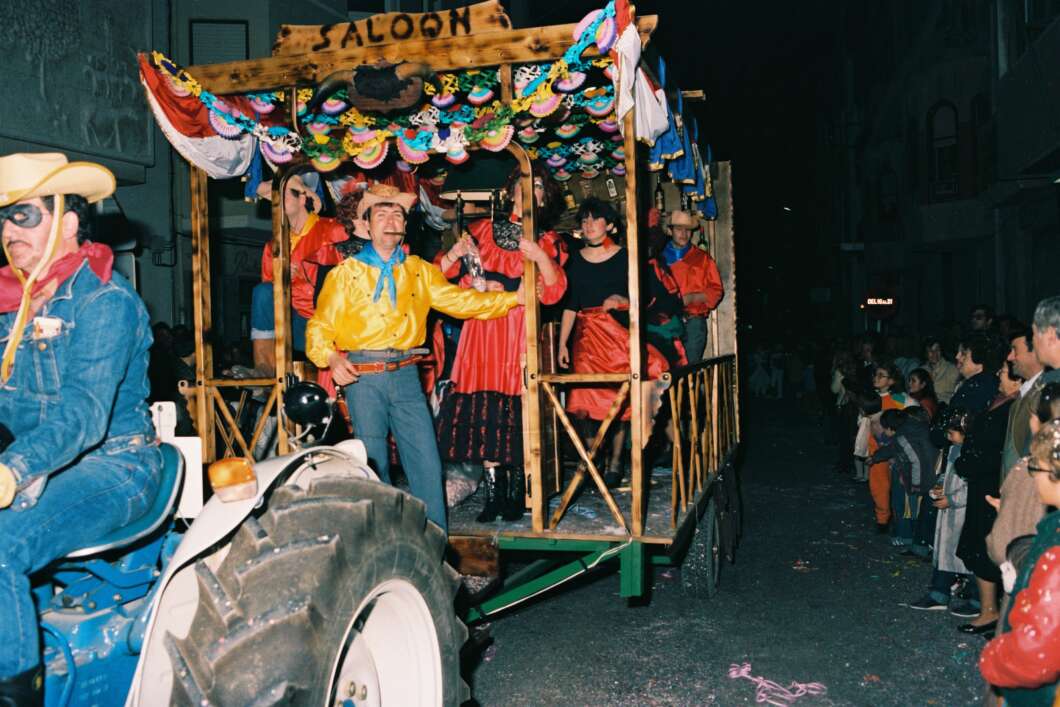 Tras la Segunda República, donde hubo un repunte de la fiesta, el carnaval es prohibido en el año 1939. Pero a pesar de esa prohibición hubo gente que se disfrazaba igualmente por carnaval, con la celebración de alguna que otra fiesta de máscaras privada, aunque eran pocos los que se atrevían a deambular por las calles. Y no es hasta 1983 cuando el Ayuntamiento recupera la fiesta con bailes de máscaras. De forma espontánea se monta una rúa que recorre las calles de la ciudad. Es al año siguiente, en 1984, cuando se crean las primeras comparsas y el actual carnaval de Vinaròs va tomando con el paso de los años a lo que es actualmente. En color fotografías de los años 1983, 1984 y 1985.