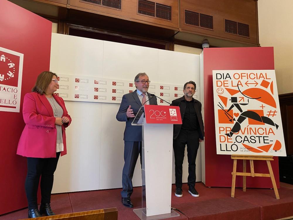 El presidente de la Diputación, José Martí, acompañado por la diputada de Cultura Ruth Sanz, ha presentado la selección del cartel presentado por Ibán Ramón, como imagen del ‘Día de la Provincia’ y del 200 aniversario de la Diputación de Castelló.