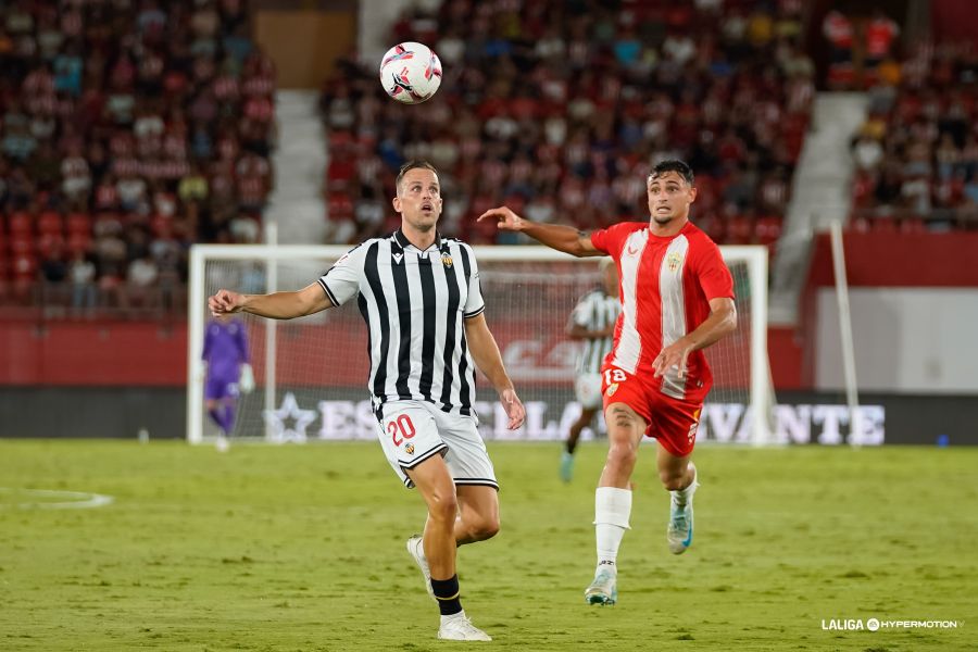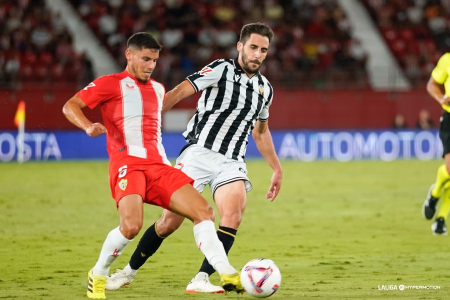 Los albinegros iniciaron el partido controlando la situación. Con posesión y aproximaciones no muy peligrosas al área del conjunto almeriense. Se afrontó este encuentro con la novedad en el eje de la defensa donde el central canario Alberto Jiménez, al parecer, fue el que pagó los platos rotos del partido contra el Cádiz, quedando relegado a la suplencia, dando entrada a un Sergio Moyita que recuperó así su plaza en la medular, por lo que Óscar Gil retrocedió hasta el eje de la defensa.