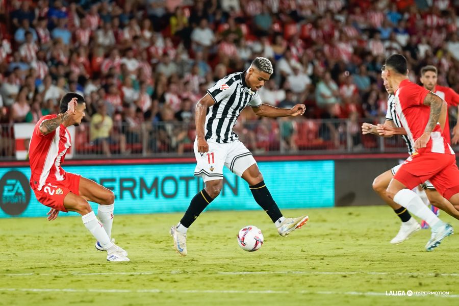 -2- Almería: Maximiliano; Marc Pubill, Chumi, Kaiky, Álex Centelles (Langa, min. 76); Edgar (Puigmal, min. 62), Robertone (Lopy, min. 62); Rachad (Gonzalo Melero, min. 63), Arribas (Marazi, min. 76), Nico Jr; y Luis Suárez.