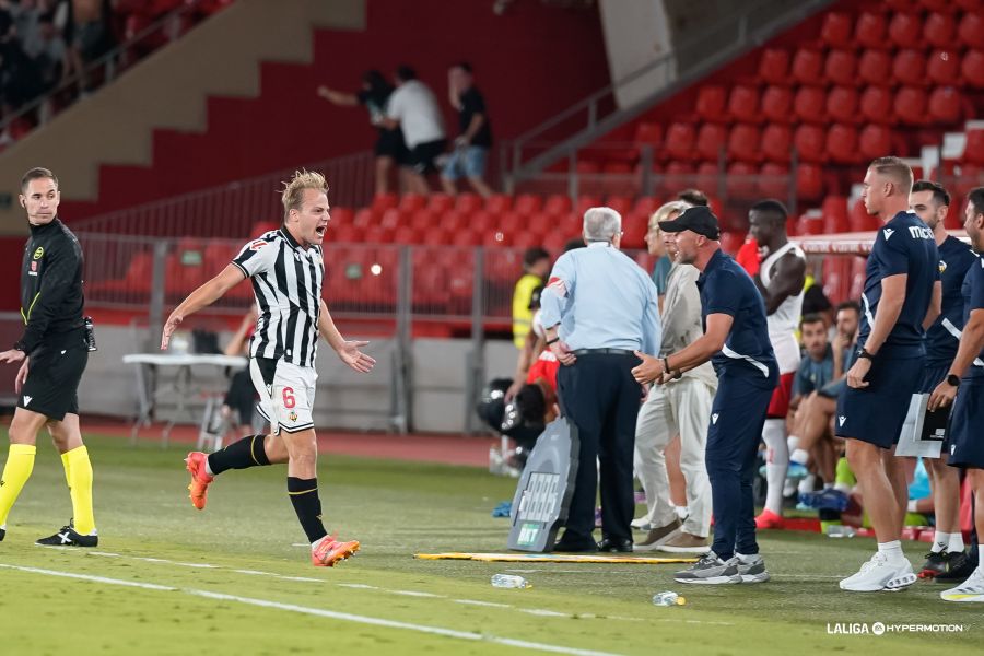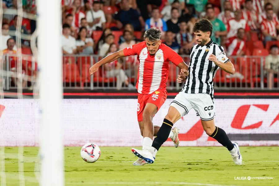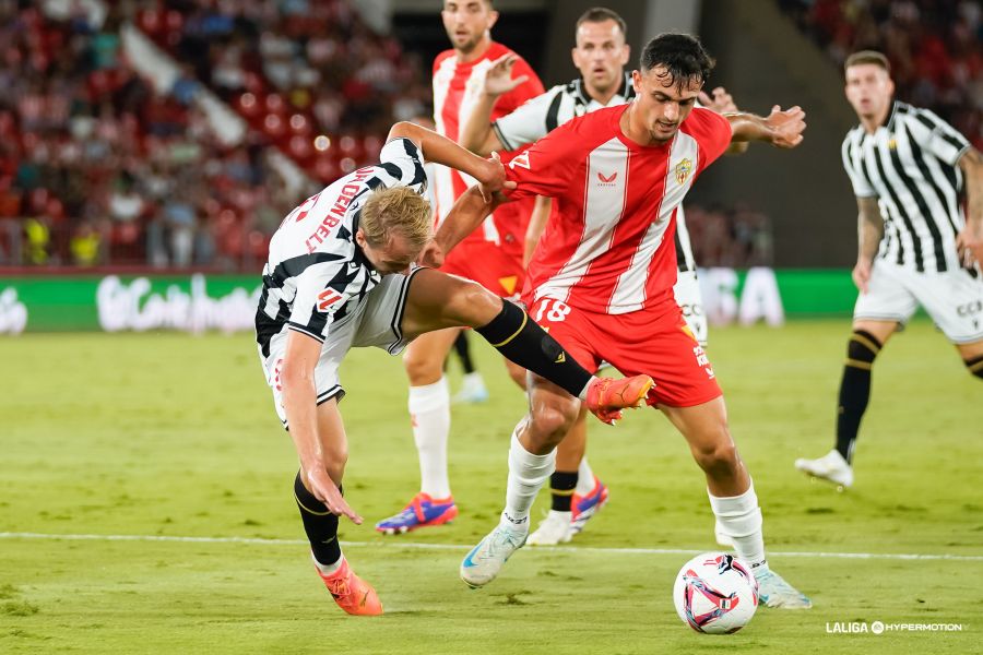 Sin cambios arrancó la segunda parte. A ver cómo se afrontaba. De inicio, Mats Seuntjens salió súper motivado. Lo intentó en el minuto 49, también en el 60, pero su gol no llegó hasta el minuto 62. Taconazo de De Miguel, el rubio mediapunta cogió el regalo, entró en el área del Almería y de tiro raso, junto a la cepa del palo derecho, alojó el balón al fondo de las mallas. Golazo para ampliar la renta en el marcador hasta el 0-2.