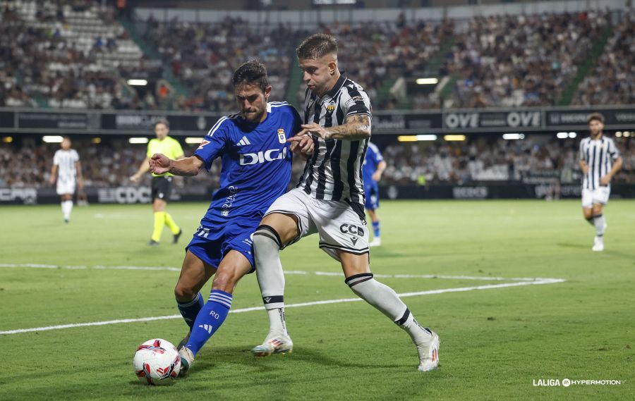 Raúl Sánchez se erigió en el líder del equipo 'orellut' y suyo fue el mayor peligro generado por el Castellón, con hasta tres ocasiones de gol, aunque la más clara la tuvo Seuntjens al aprovechar una asistencia de Jesús de Miguel para quedarse ante el meta del Oviedo, al que superaba en el uno contra uno, pero su disparo acababa en el lateral de la red.