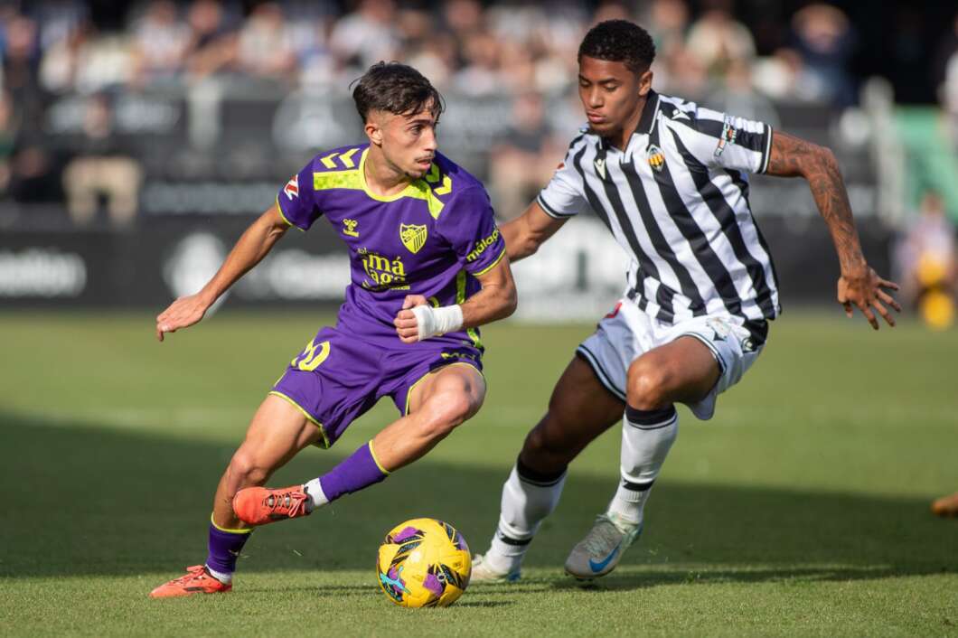 El portero visitante despejó un disparo muy peligroso en el 15’ de juego. El guardameta desvió con la yema de los dedos un cuero raso que se colaba al segundo palo. Respondió el Málaga CF en el 19’ a la salida de un córner. Manu Molina la puso templada al corazón del área para que rematase Pastor imponiéndose a sus homólogos albinegros.