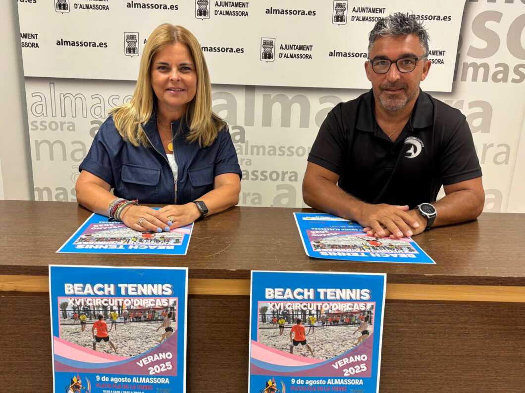 La diversió arran de mar, a Almassora, està garantida amb una nova edició del XVI Circuit Dipcas de Beach Tennis, que se celebrarà el dissabte 9 d'agost a la platja Pla de la Torre. La regidora de Platges i Turisme, Silvana Rovira, i el director de Patagònia Esport, Roberto Marqués, han animat a participar en esta activitat esportiva per a la qual es requereix inscripció prèvia.