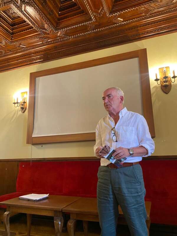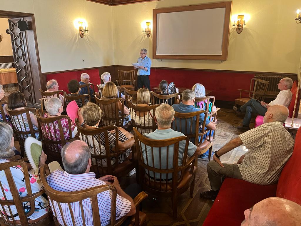 Con posterioridad el comisario de la muestra explicó a grandes rasgos el contenido de la “pequeña exposición” compuesta por ocho paneles que se ha instalado en el vestíbulo del Casino para dejar libres el resto de estancias por la permanencia de la muestra hasta abril de 2024.