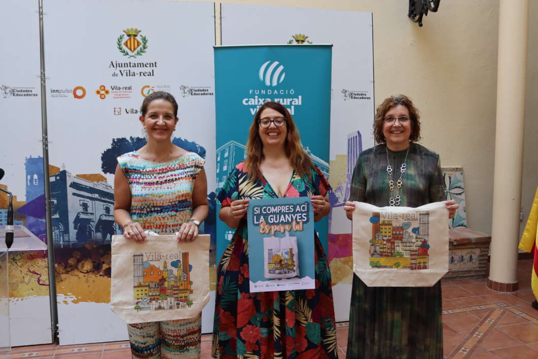 El comerç de Vila-real reedita la campanya d'estiu per a fidelitzar als seus clients i incentivar les vendes, en aquesta ocasió amb el repartiment de 3.000 bosses de cotó decorades amb alguns dels monuments més emblemàtics de la ciutat. La Unió de Comerç de Vila-real (Ucovi) llança la campanya ‘Compra a Vila-real i disfruta’, amb el suport de la Regidoria de Comerç i la Fundació Caixa Rural Vila-real. La regidora de Comerç, Ana Torres, ha presentat hui la iniciativa al costat de la secretària d’Ucovi, Tere Esteve, i la presidenta de la Fundació Caixa Rural Rural Vila-real, Sonia Sánchez.