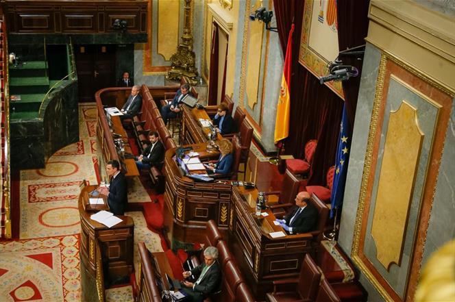 El Congreso ha tenido una presencia testimonial de 43 diputados, mientras que 306 han seguido la sesión desde sus domicilios y han emitido su voto de forma telemática.