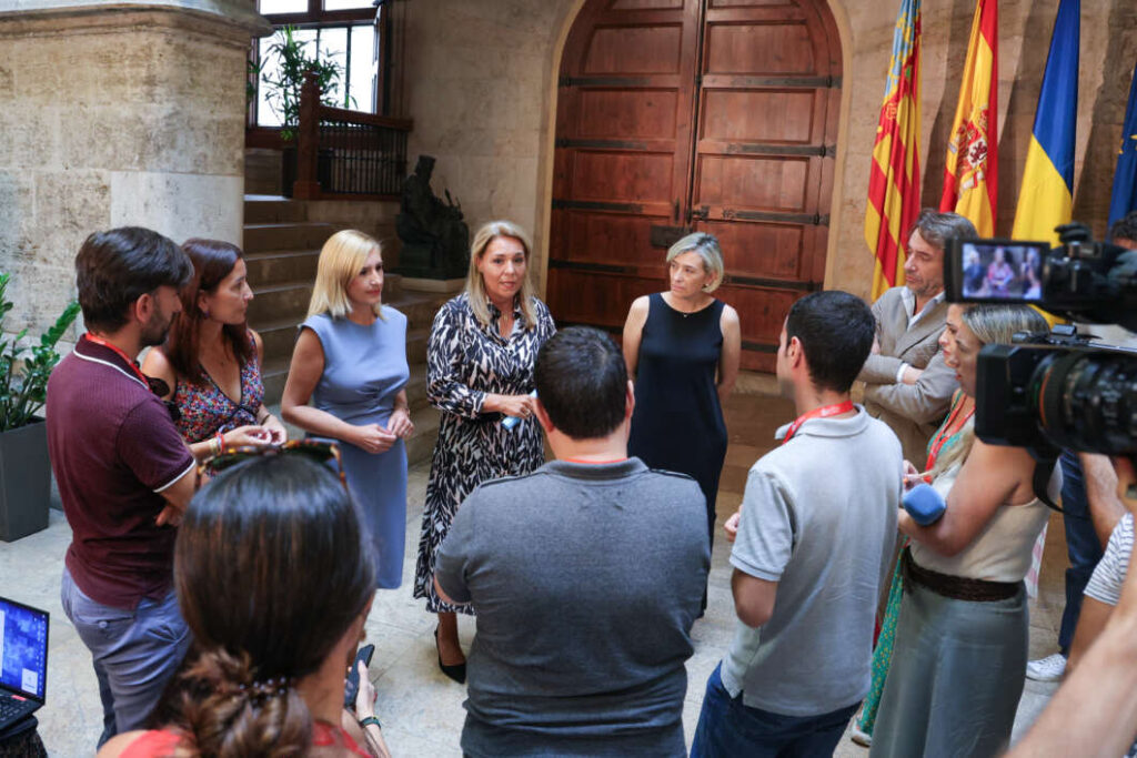 La representante del Consell ha pronunciado una declaración institucional en el Palau de la Generalitat acompañada de la consellera de Hacienda, Economía y Administración Pública, Ruth Merino, la consellera de Justicia e Interior, Elisa Nuñez, y la consellera de Medio Ambiente, Agua, Infraestructuras y Territorio, Salomé Pradas.