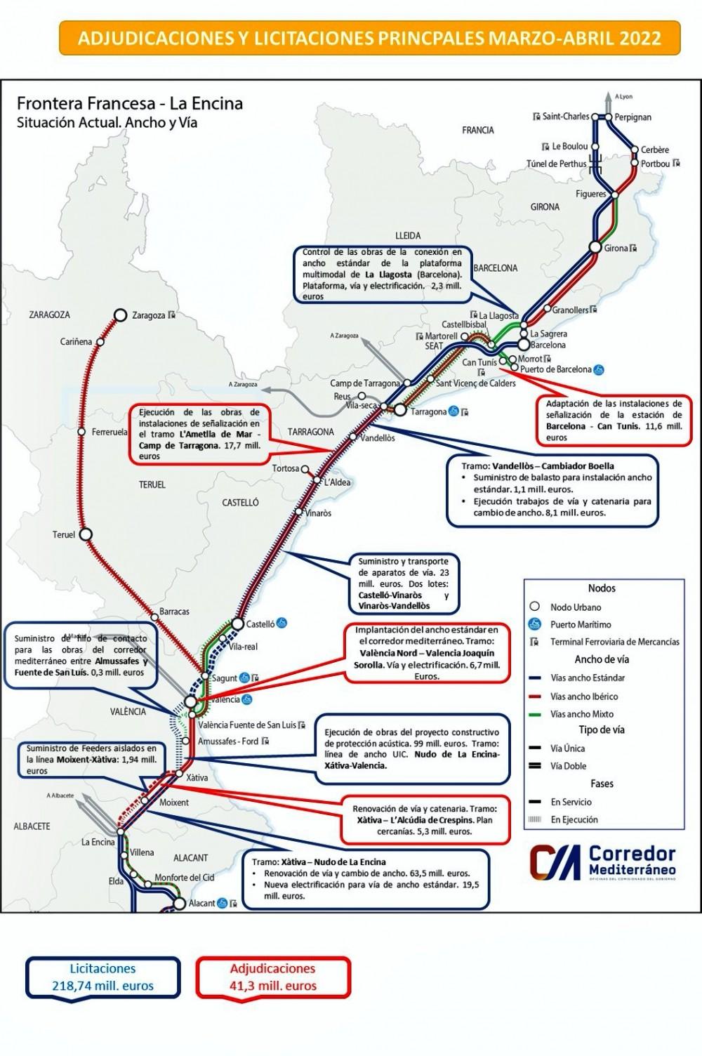 El Comisionado del Corredor Mediterráneo, Josep Vicent Boira, señalaba en este sentido: “Tal vez no le estamos dando la importancia que tiene, pero al licitar los cambios de ancho Norte y Sur: entre Almería y frontera francesa (a excepción de tercer hilo entre La Encina, Alicante y el soterramiento Lorca) nos muestra que está todo en construcción. Ahora sí que se ha pasado del powerpoint, o de los papeles a las obras. Esta acumulación de licitaciones y adjudicaciones lo muestra…”
