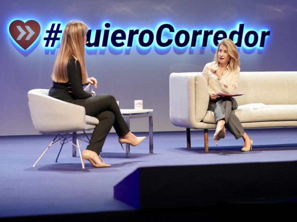 La última en subir al escenario ha sido la ministra de Transportes, Movilidad y Agenda Urbana, Raquel Sánchez, a quien se ha entrevistado sobre el futuro de esta infraestructura tan importante para la competitividad de la economía de nuestro país. Durante su intervención, ha indicado que “tenemos obras en 700 km a lo largo de todas las CCAA por las que pasa el Corredor Mediterráneo. Cuando finalicen, el Corredor duplicará su longitud, alcanzando los 1.300 km”. “Gracias a todo este trabajo y compromiso, hoy tenemos ya en servicio 589 km”, ha concluido.