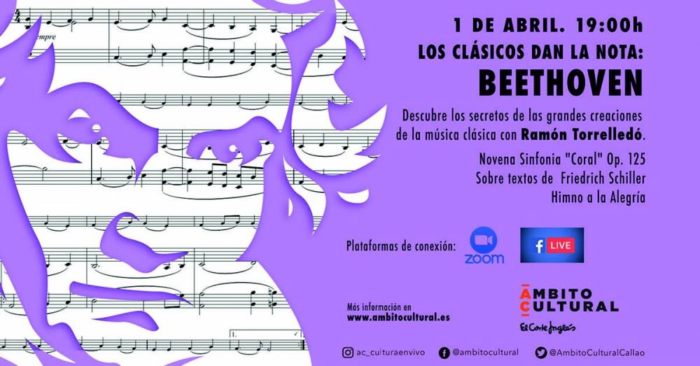 Y el miércoles 1 de abril, "Los clásicos dan la nota". Este ciclo estará dirigido por el director de orquesta Ramón Torrelledó. Las grandes estrellas de la música, Bach, Mozart, Haydn, Beethoven, Schubert, Schumann, Chopin Liszt, Wagner, Verdi, Bruckner, Mahler, Schoenberg, Puccini, y tantos otros, se podrán disfrutar en Zoom y en Facebook Live de Ámbito Cultural. Unas obras que discurren por senderos procelosos, a los que es posible acceder, en plenitud, si previamente uno se ha "empapado" de las claves esenciales que nos permitan leer el mapa técnico, emocional e histórico del recorrido, seguido por el compositor en su creación, para alcanzar a disfrutar y conocer las potencialidades que la obra maestra ofrece. Para ello, Ámbito Cultural de El Corte Inglés comienza este ciclo musical, estético, formativo, informativo y divulgativo, destinado a aportar, desde el rigor y el placer, claves esenciales de las grandes páginas de la música clásica, con Beethoven. Para más información: https://ambitocultural.es/beethoven-ramon-torrelledo-clasicos-online-85414/