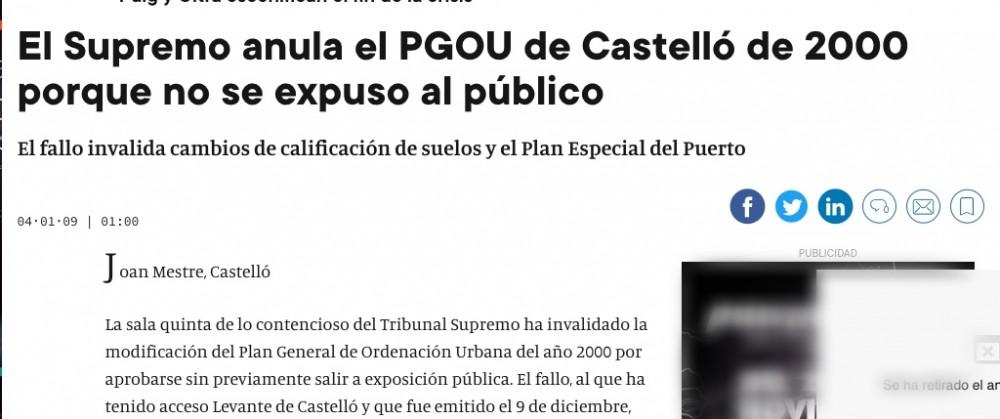 Además, la famosa modificación del Plan General del 2001, con la que se consiguió urbanizar la zona, también tuvo su lado oscuro. Algunos de los conflictos urbanísticos que se generaron con los propietarios, entre ellos, el de la avenida Villarreal, acabarían por tumbar el Plan General de Castelló.